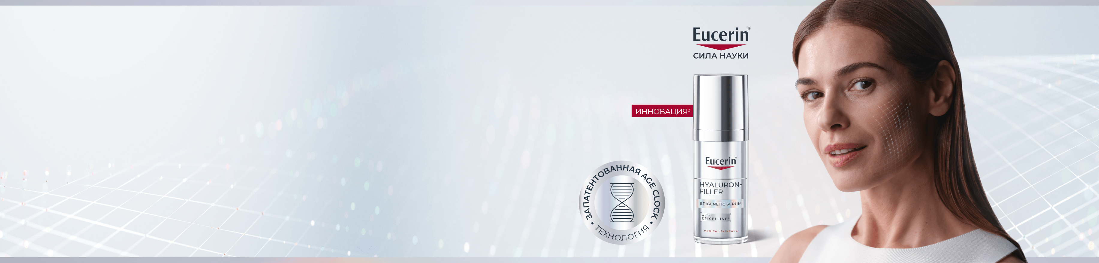 (1) При использовании Антивозрастной эпигенетической сыворотки Eucerin Hyaluron-Filler ожидаемый результат: повышение упругости, лифтинг-эффект, уменьшение глубоких морщин, сокращение мелких морщин, моделирование овала лица, увлажнение, сияние, омоложение, улучшение текстуры кожи (клинические исследования в Германии в 2023 году Consumer and Clinical Science, Beiersdorf, Hamburg и SGS Institut Fresenius GmbH Hamburg в течение 2 и 4 недель при участии 43 добровольцев соответственно), придание гладкости коже (по данным опроса, после 4 недель применения 2 раза в день, MWResearch GmbH, 160 респондентов, Германия, 2023 г.).
