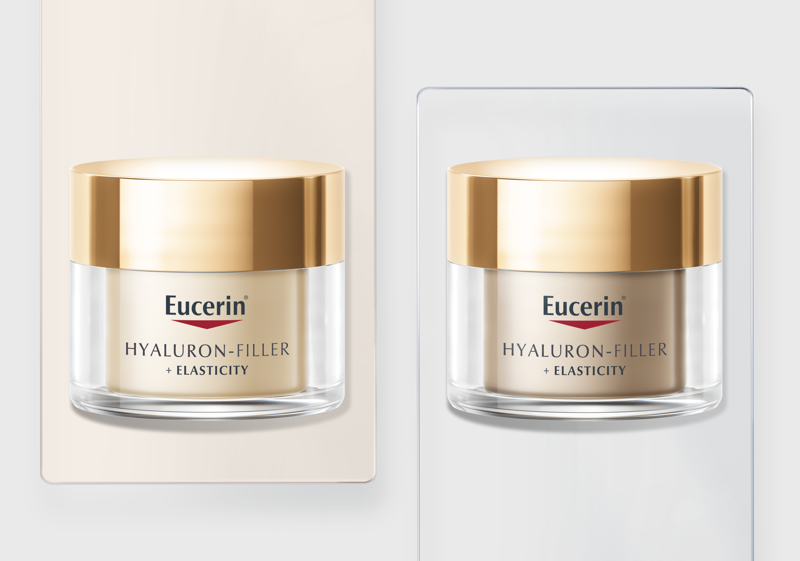 Линия Eucerin Hyaluron-Filler + Elasticity была специально разработана для того, чтобы запускать процессы собственной биоревитализации, разглаживать даже глубокие морщины, увеличивать эластичность кожи и уменьшать возрастные пигментные пятна. Инновационная комбинация высокомолекулярной и низкомолекулярной гиалуроновой кислоты разглаживает даже глубокие морщины. Мощная комбинация арктиина и креатина активизируют выработку коллагена и повышает эластичность кожи. Запатентованный тиамидол уменьшает проявления пигментации. Кожа становится более упругой, глубокие морщины и пигментные пятна сокращаются.
